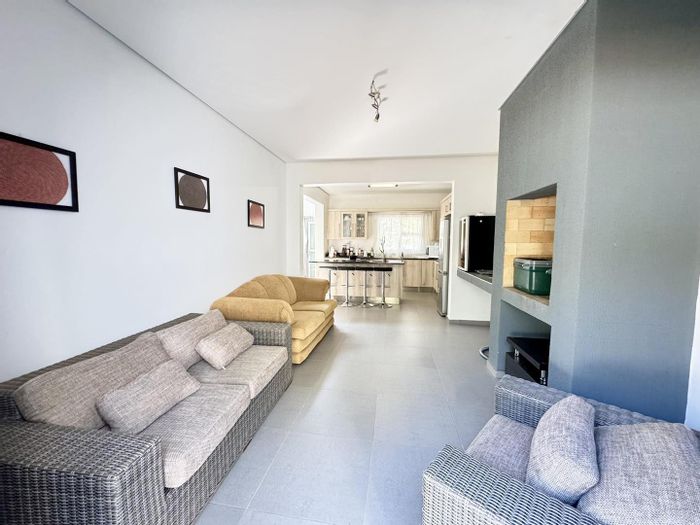 Entertainer’s haven in Elisenheim Lifestyle Estate, featuring a walled private garden, outdoor TV with built‑in braai, modern kitchen, and 3 beds, 2 baths with double garage.