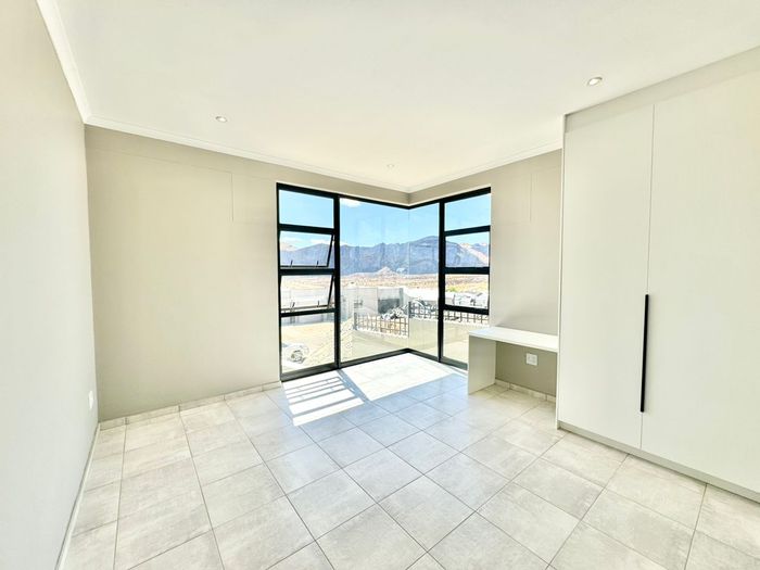 Enjoy relaxed estate living in Elisenheim Lifestyle Estate with open-plan double-volume interiors, built-in braai and mountain views — three bedrooms, two bathrooms and a single garage.