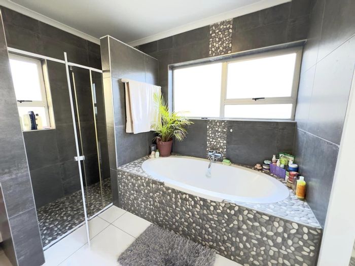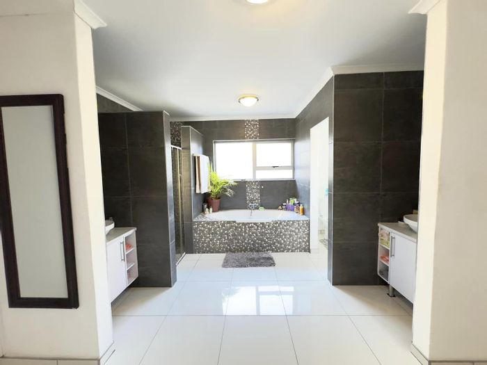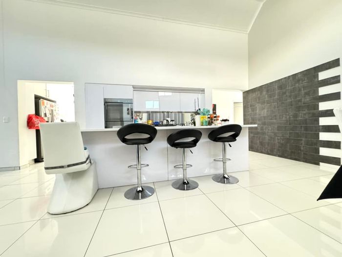 Corner-positioned home in Elisenheim Lifestyle Estate offers a striking double-volume roof, soaring ceilings and indoor entertainment with built-in braai and stacking doors. Three en-suite bedrooms and double garage.