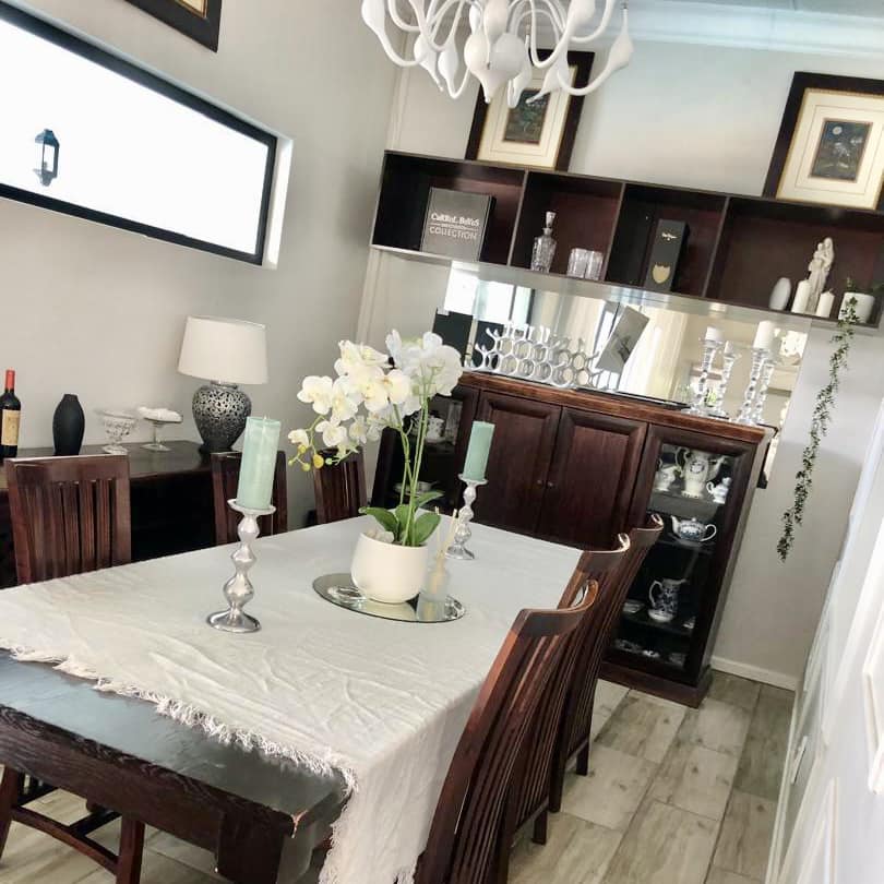 A lovely dining room area promises cosy inside entertainment with family and friends alike.