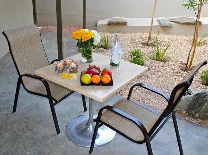 The main building comprises: Ground floor with: Entrance stoep, entrance, reception area, office with worktop, lounge, breakfast buffet area with granite tops, kitchen with built-in cupboards and gas hob, scullery area, pao,firy/ storage facilities, guest wc with hand washbasin, VIP suite with built-in cupboard and full bathroom, and first floor with: Staircase landing, passages, guestroom with built-in cupboards, kitchenette with built -in cupboards, fitted appliances and granite top breakfast counter, bathroom with shower, wc and hand washbasin, as well as balcony, and another guestroom with built-in cupboards, study, and bathroom facilities with shower, wc and hand washbasin.