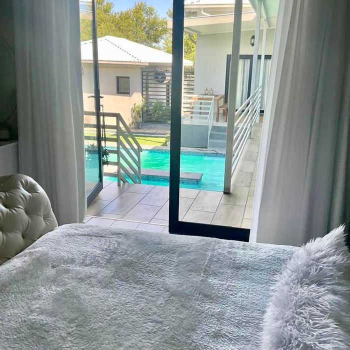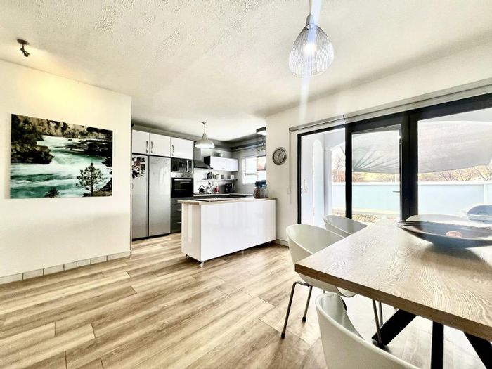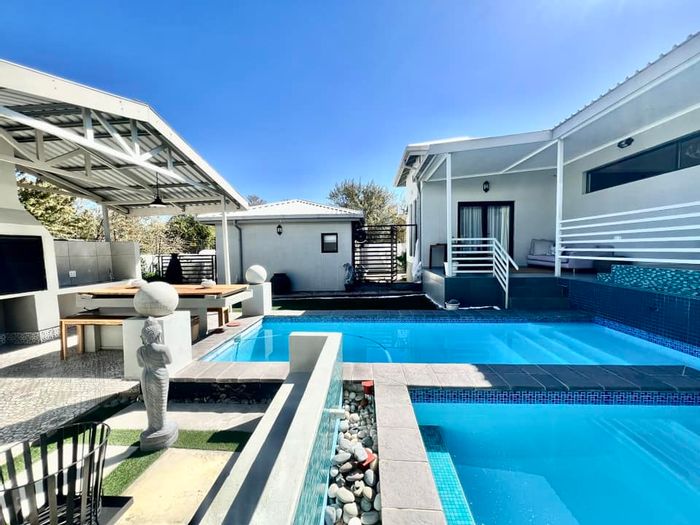 Executive living in Avis, Windhoek near Hosea Kutako Airport and amenities; modern open-plan kitchen, splash pool and deck in a secure complex — fully furnished three-bedroom, two-bath, double garage.