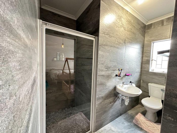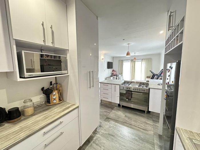 Effortless indoor-outdoor entertaining in Cimbebasia, Windhoek — sleek open-plan kitchen and built-in BBQ patio, plus two bedrooms and two bathrooms with secure parking for three.
