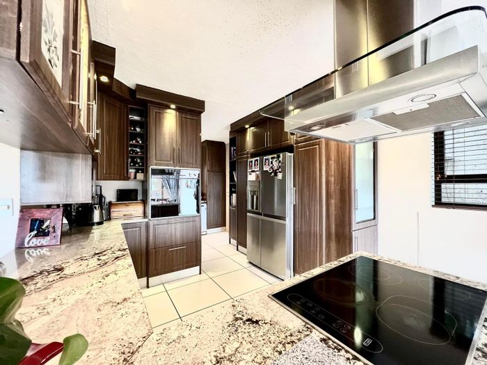 Entertainer's family home in Elisenheim estate offering open-plan kitchen with scullery, outdoor BBQ terrace, balconies off two bedrooms, solar geyser and ample parking — four beds, four baths, double garage.