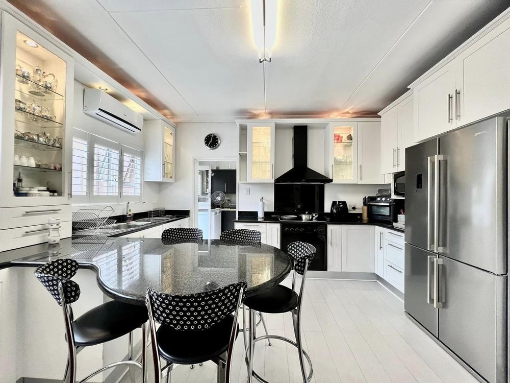 Offering vast in- and outside entertainment areas, a tv room, formal lounge, an informal lounge overlooking the outdoor patio (with BBQ & Bar), a dining room adjacent to the super stylish black & white kitchen (and separate scullery).