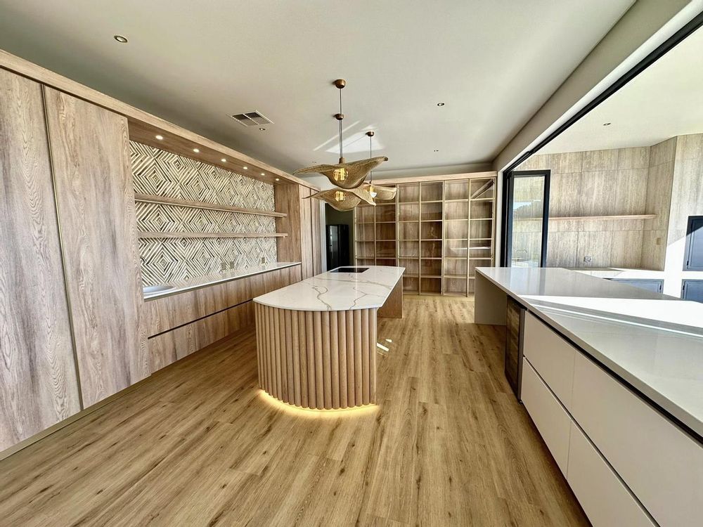 A seamless flow between the indoors and outdoors with stack-away doors and windows that run from the kitchen, through the full length of the magnificent lounge and tv room.