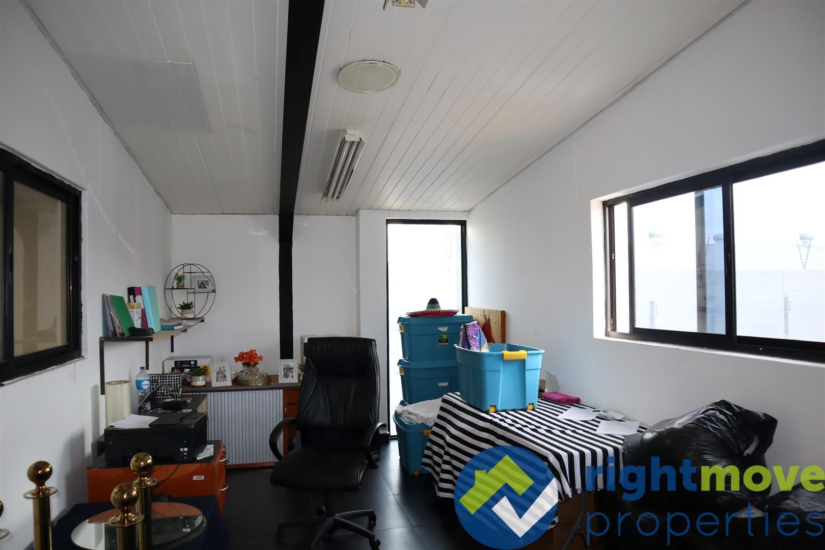 Double-volume warehouse, plastered- and painted brick walls, IBR roofing and aluminium window- and door frames, plaster-, and suspended ceilings and epoxy-, and ceramic tile flooring.