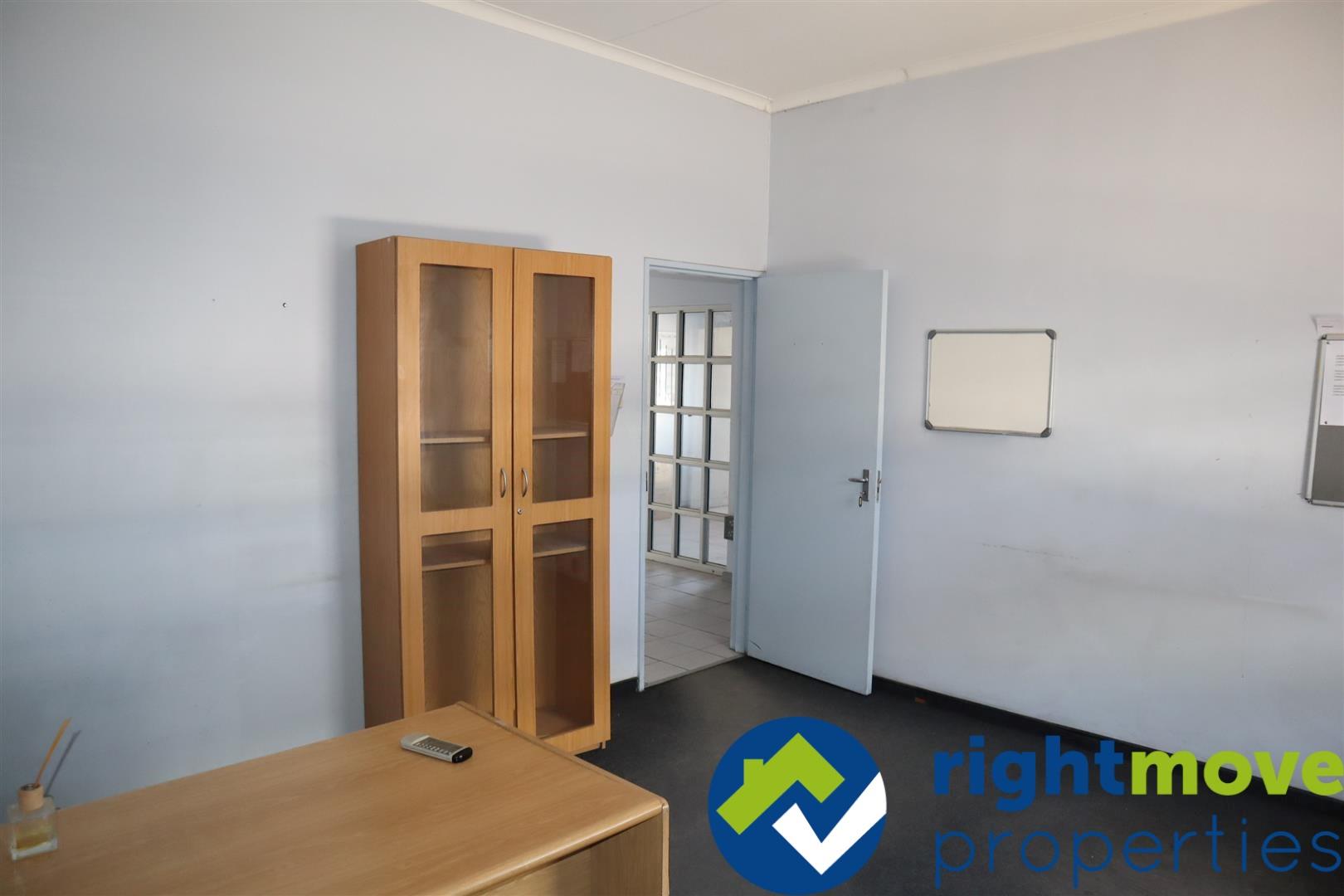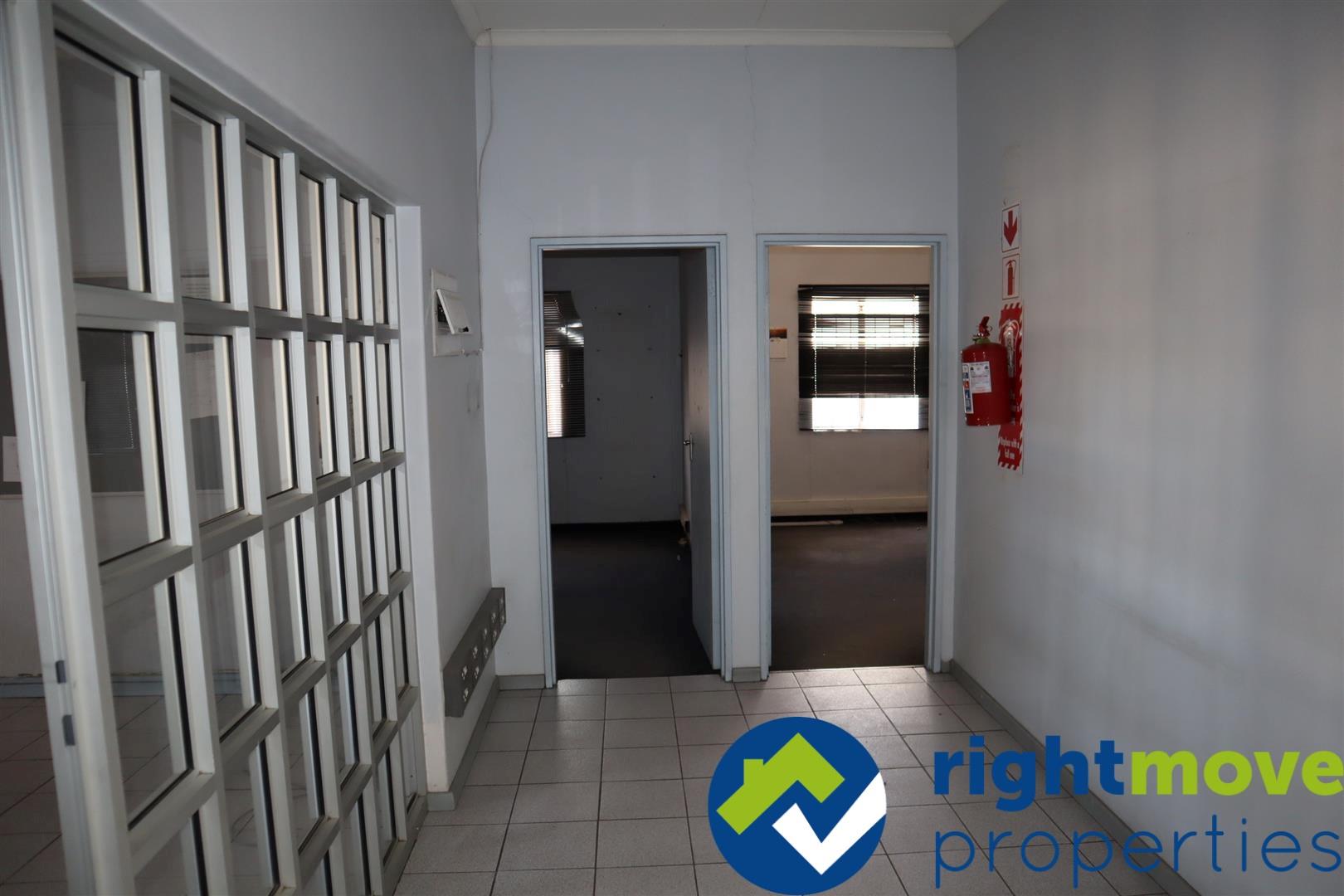 Unit consists of a reception-waiting area, a boardroom, two offices, a kitchenette, and two separate toilets, with a warehouse attached.