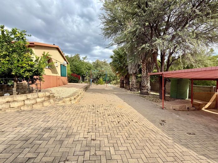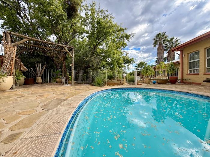 Elevated Windhoek West living with sweeping views and easy access to amenities; garden oasis with pool and double garages/workspaces — adaptable layout currently offering two bedrooms and one bathroom.
