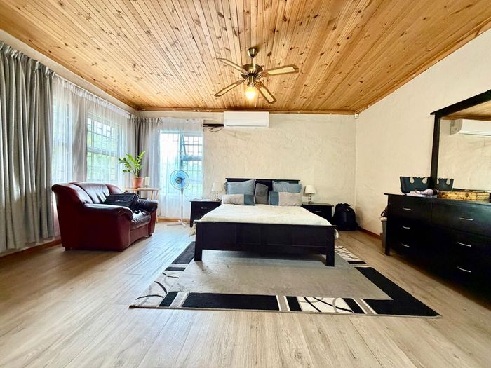 Entertain beneath mature trees in Pionierspark — large sloping 1250sqm erf with eastern balcony views and an 80sqm one-bedroom flat; three bedrooms, two baths, double garage.