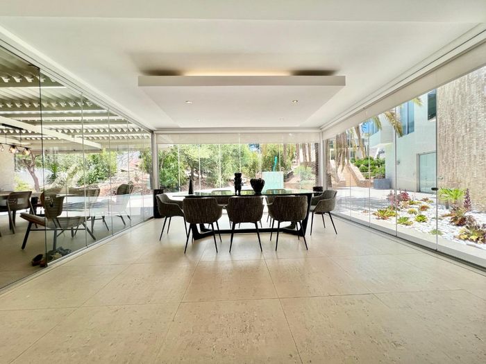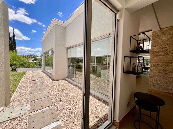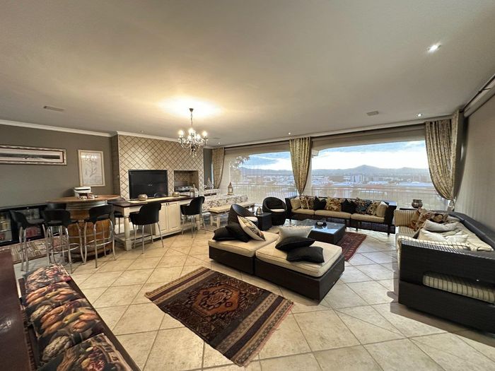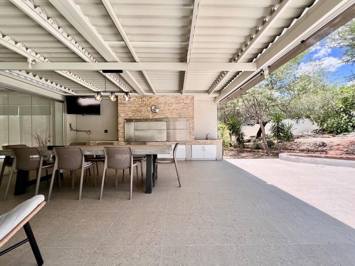 Executive entertainer's retreat in Klein Windhoek, set for effortless hosting and commanding panoramic city and mountain views. Includes five bedrooms, three bathrooms and three garages.