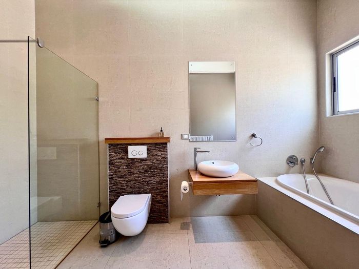 Flexible family living in sought-after Klein Windhoek, with generous indoor-outdoor flow and a separate 2-bedroom flat with private garage — ideal for rental income. Four beds, two baths.