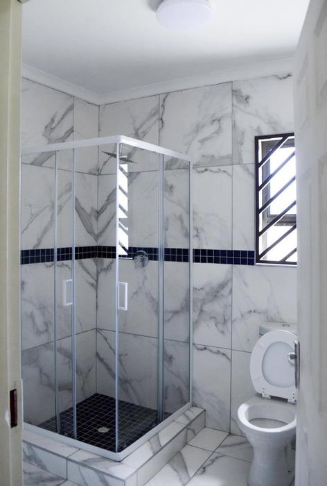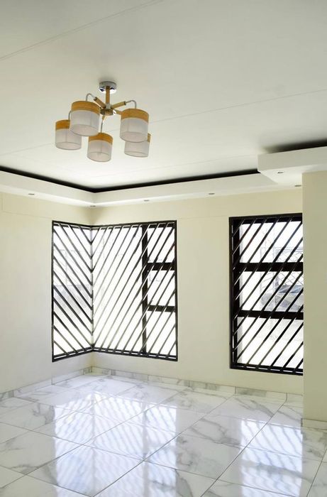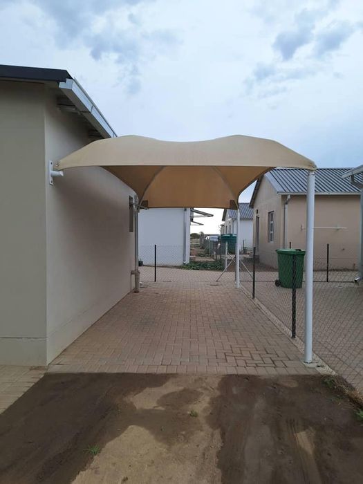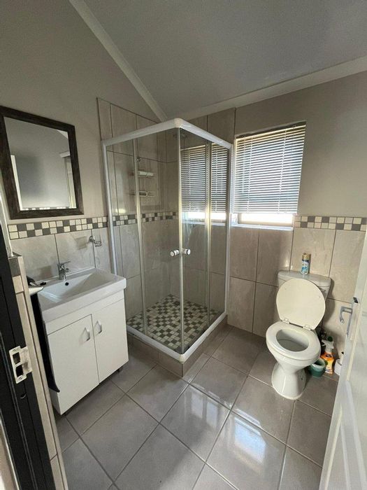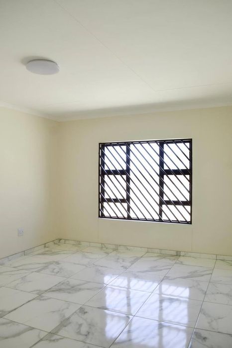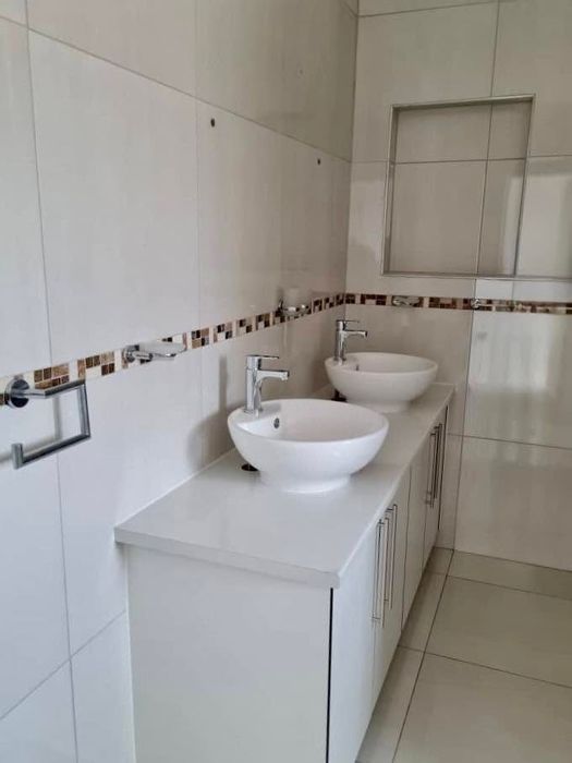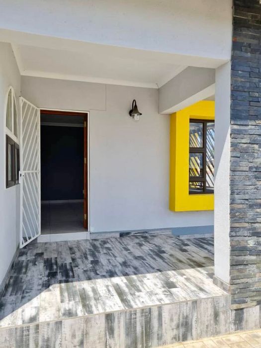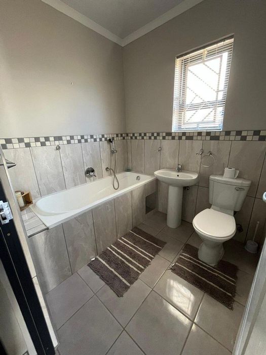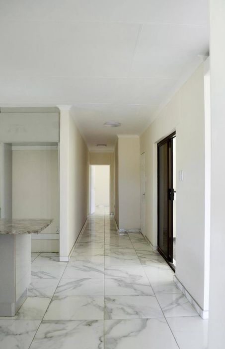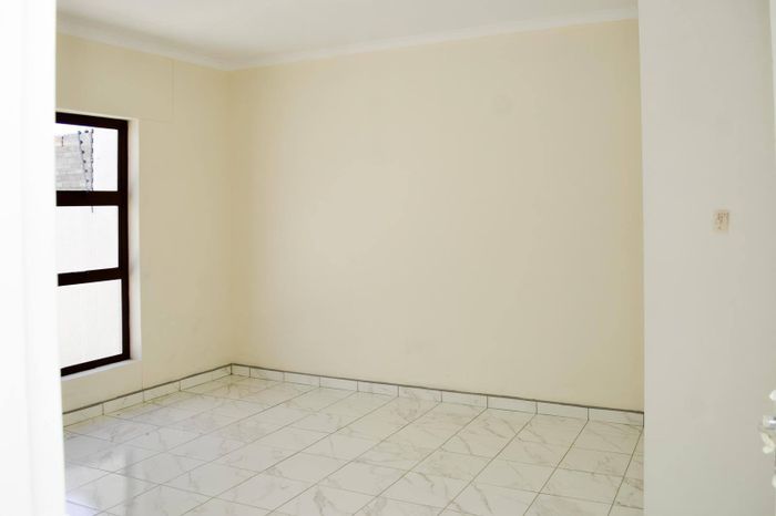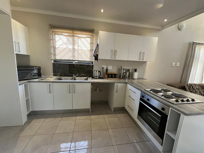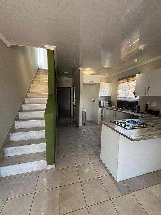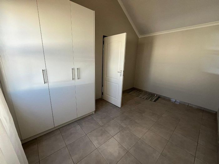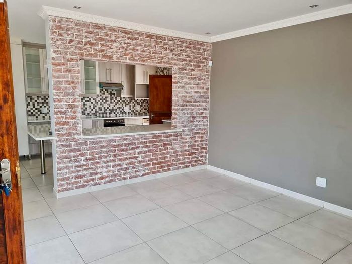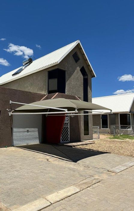 Relax in a secure, quiet Okahandja complex with open-plan living flowing to a covered porch and built-in BBQ — pet-friendly townhouse with three bedrooms, two bathrooms, and double covered parking.