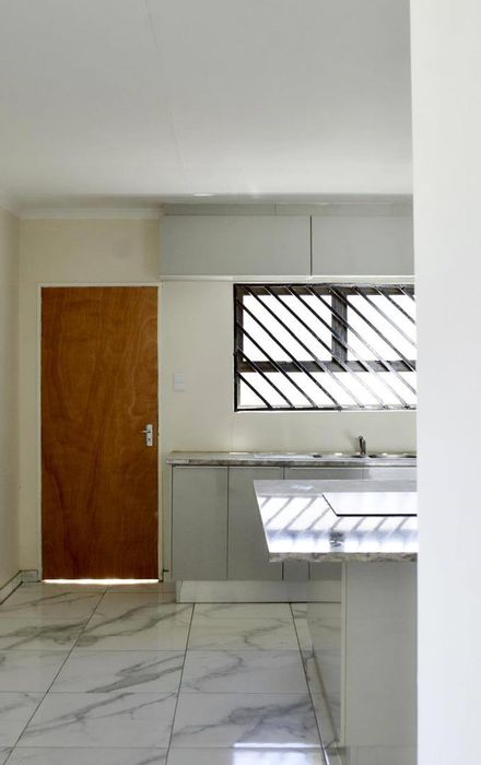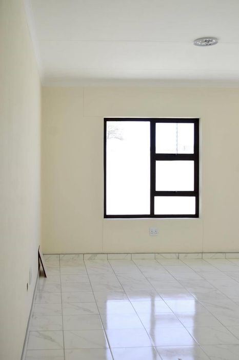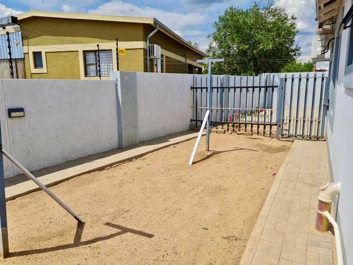 2-bedroom, 1-bathroom home with open-plan lounge, kitchen, private courtyard, and parking bay. Levies: N$1,900/month.