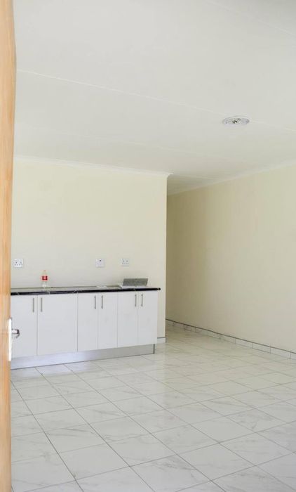 Secure, relaxed family living in Extension 6, Okahandja with open-plan kitchen, paved courtyard and fiber internet; features two bedrooms, one bathroom and a motorised double garage.