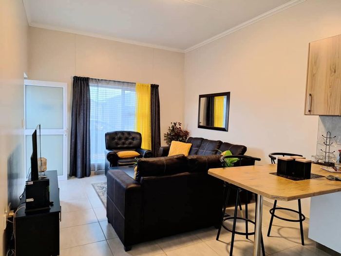 Relax on a private balcony with built-in BBQ in secure, well-managed Tura Heights complex, minutes from Okahandja amenities — move-in-ready first-floor unit with 2 beds, 1 bath.