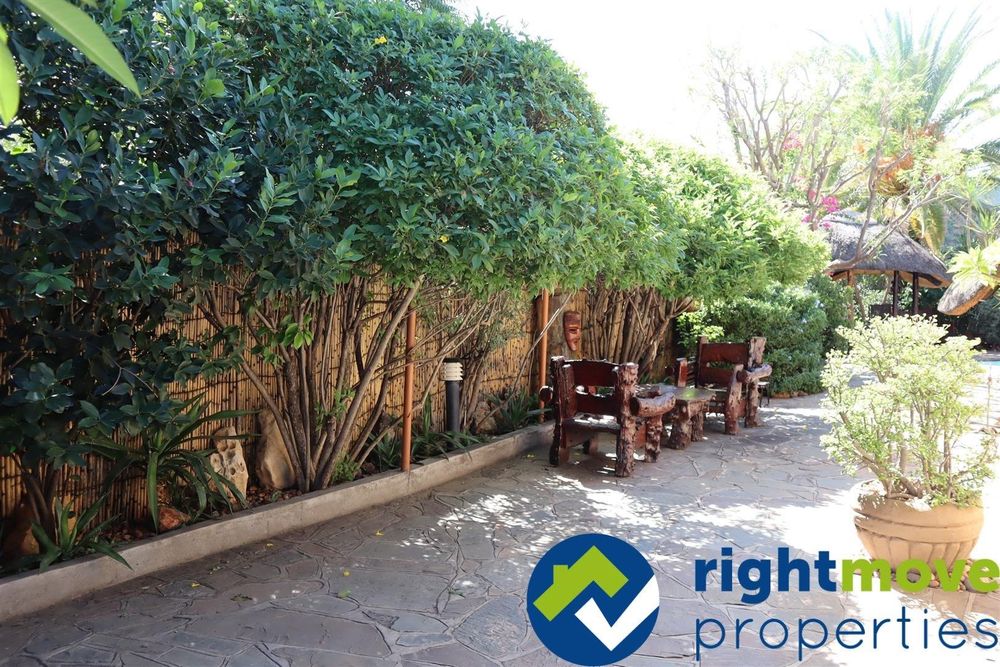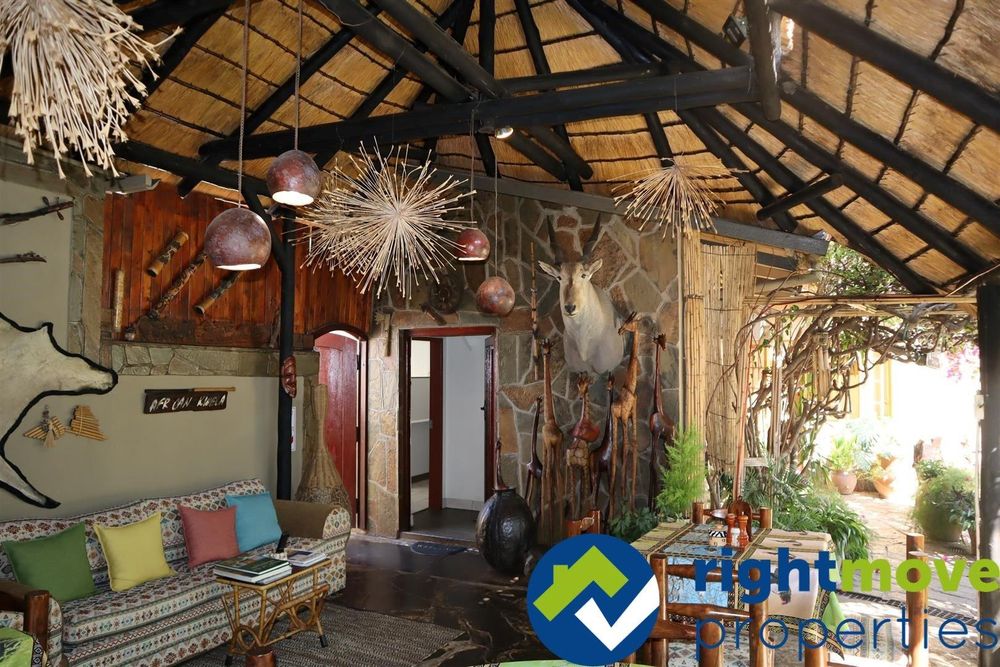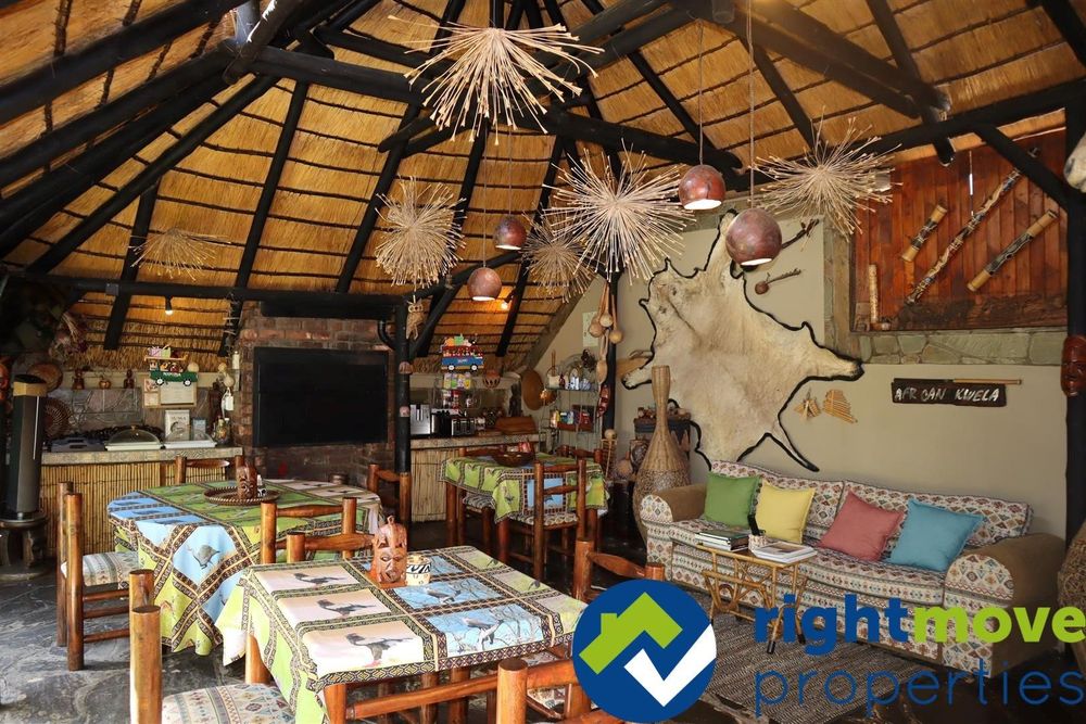 The thatched lapa is located to the rear of the laundry and comprises of a slasto floor. Breakfast buffet counter- and braai. The thatched lapa is utilised as breakfast area.