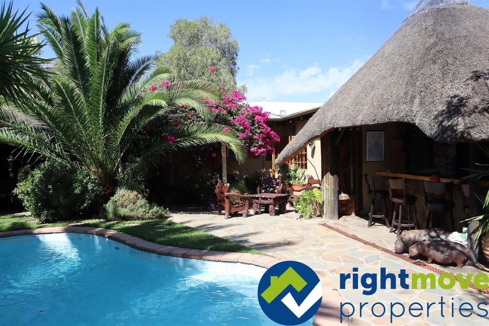 The main building comprises of: Entrance, reception area, office, lounge with fire place and wall unit, tv room, dining area, kitchen with built-in cupboards and fitted appliances, pantry, scullery, bedroom with built-in cupboards, full bathroom with spa bath, separate wc, and another bathroom with shower, wc and hand washbasin, four guest rooms with en-suite bathroom facilities each respectively, as well as a covered entrance stoep to the front of two guest rooms.