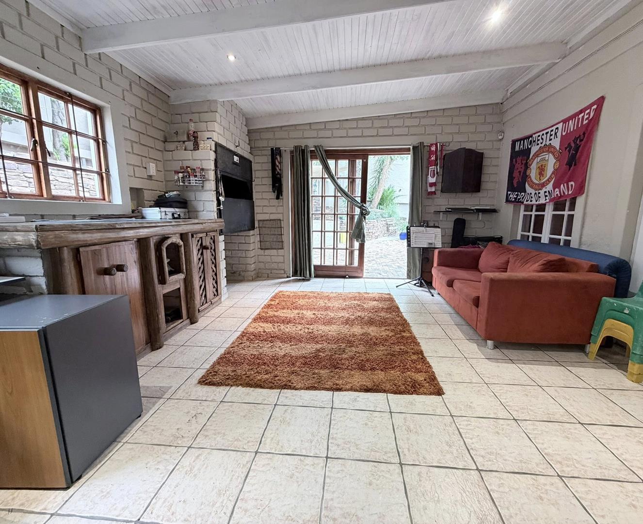 Big entertainment room with fitted BBQ, opening through French doors to a large, private garden, ideal for pets and children.
