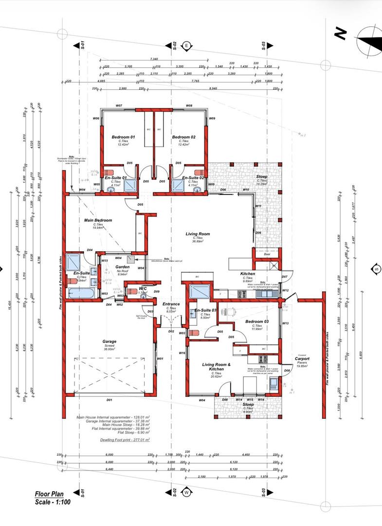 (Main house ±128 sqm | Flat ±39.88 sqm | Garage ±37 sqm | Additional covered areas included)