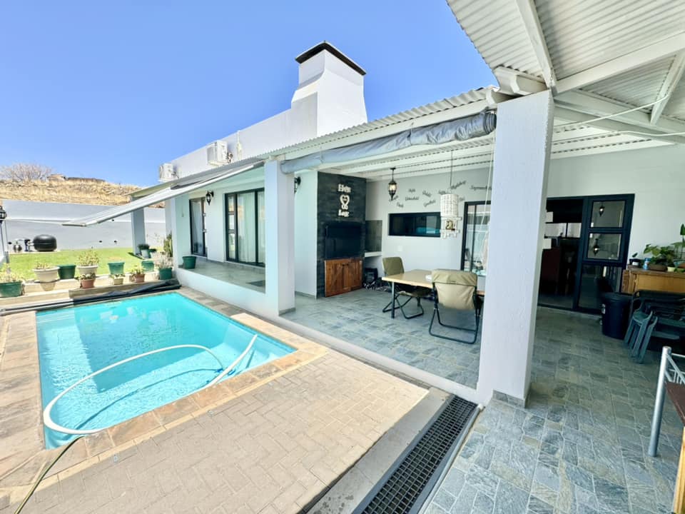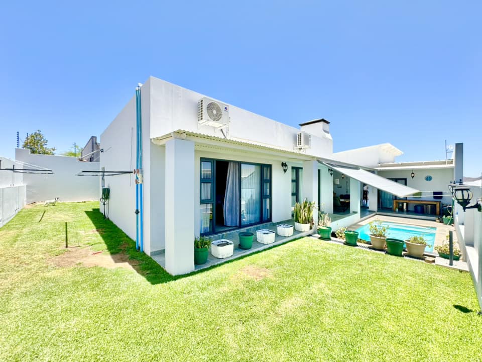 This modern three-bedroom home offers comfortable living in one of Windhoek’s most sought-after lifestyle estates. With spacious interiors, quality finishes, and beautiful views, this property is ideal for families or professionals seeking secure estate living.