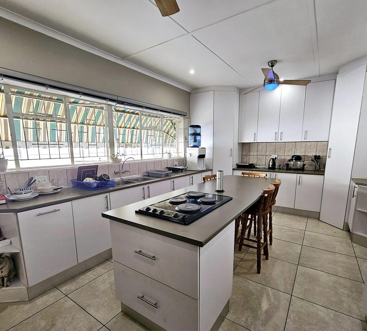 Additional: Beams, air-condition, blinds on all windows, ceiling fans in all rooms, 3 x solar geysers & several carports.