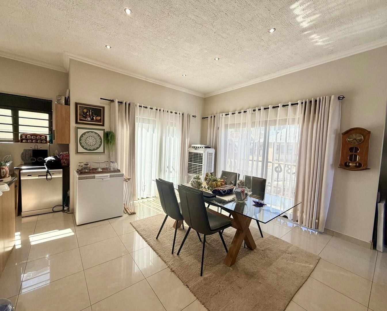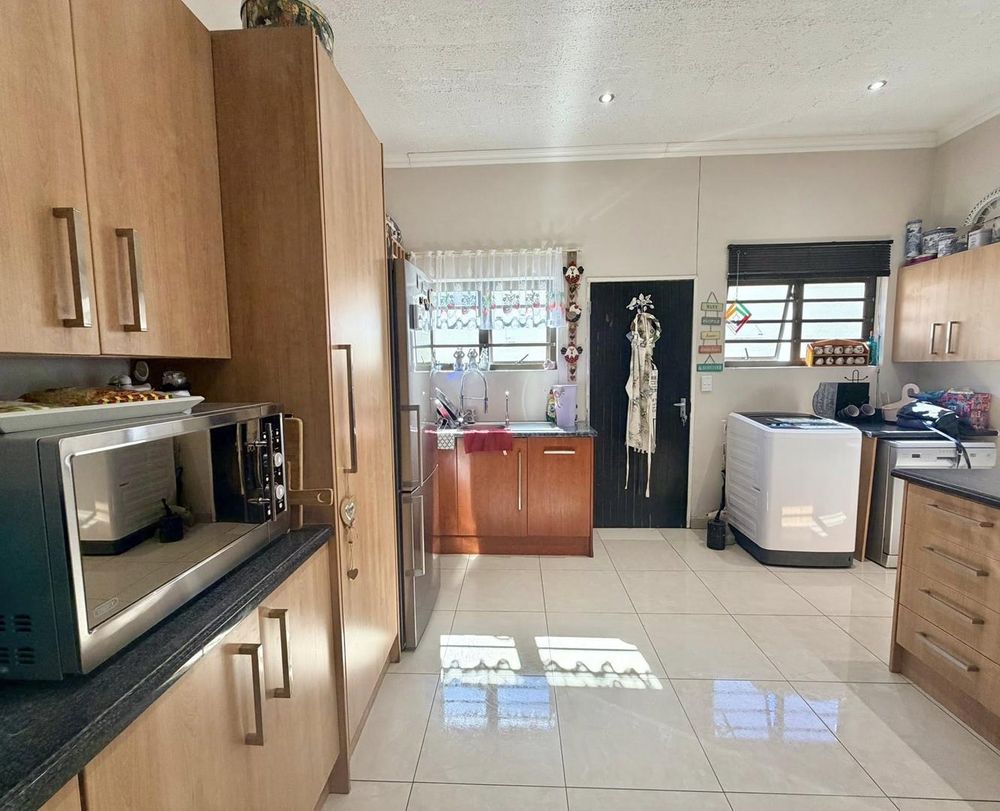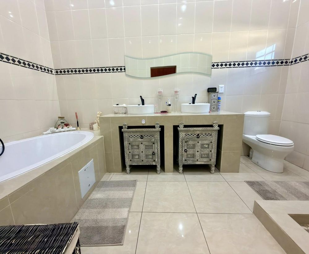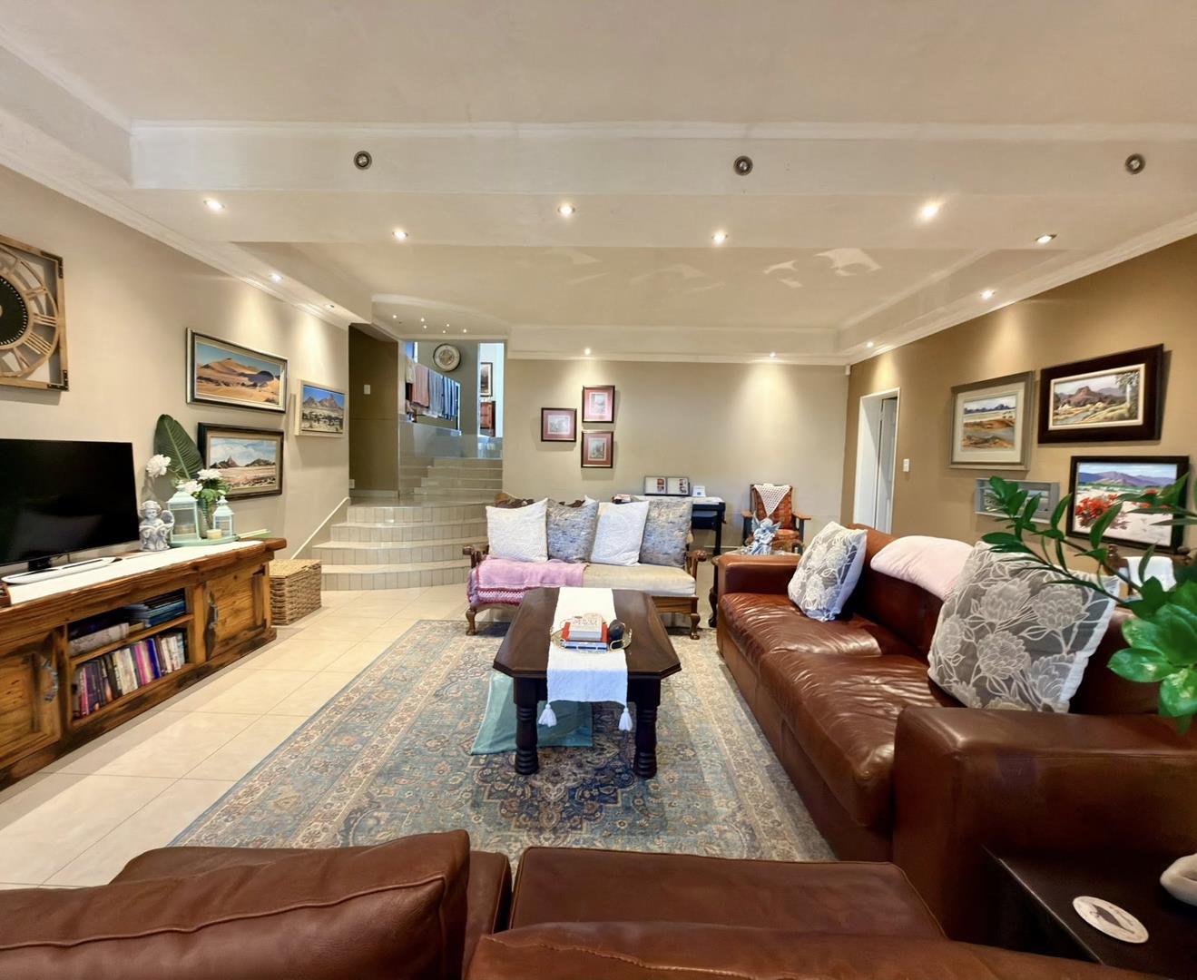 Step out from the lounge onto a large wooden deck with stunning views, ideal for relaxing sundowners with family & friends. Stairs lead to a beautiful garden with another entertainment area, braai area, two pools - a small one that is shallow and the other one being very deep.
