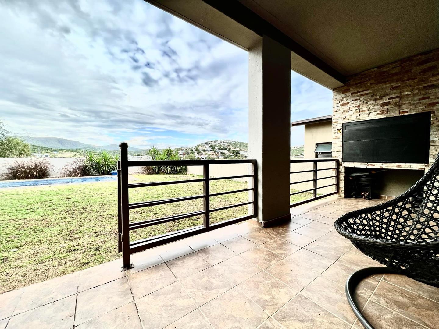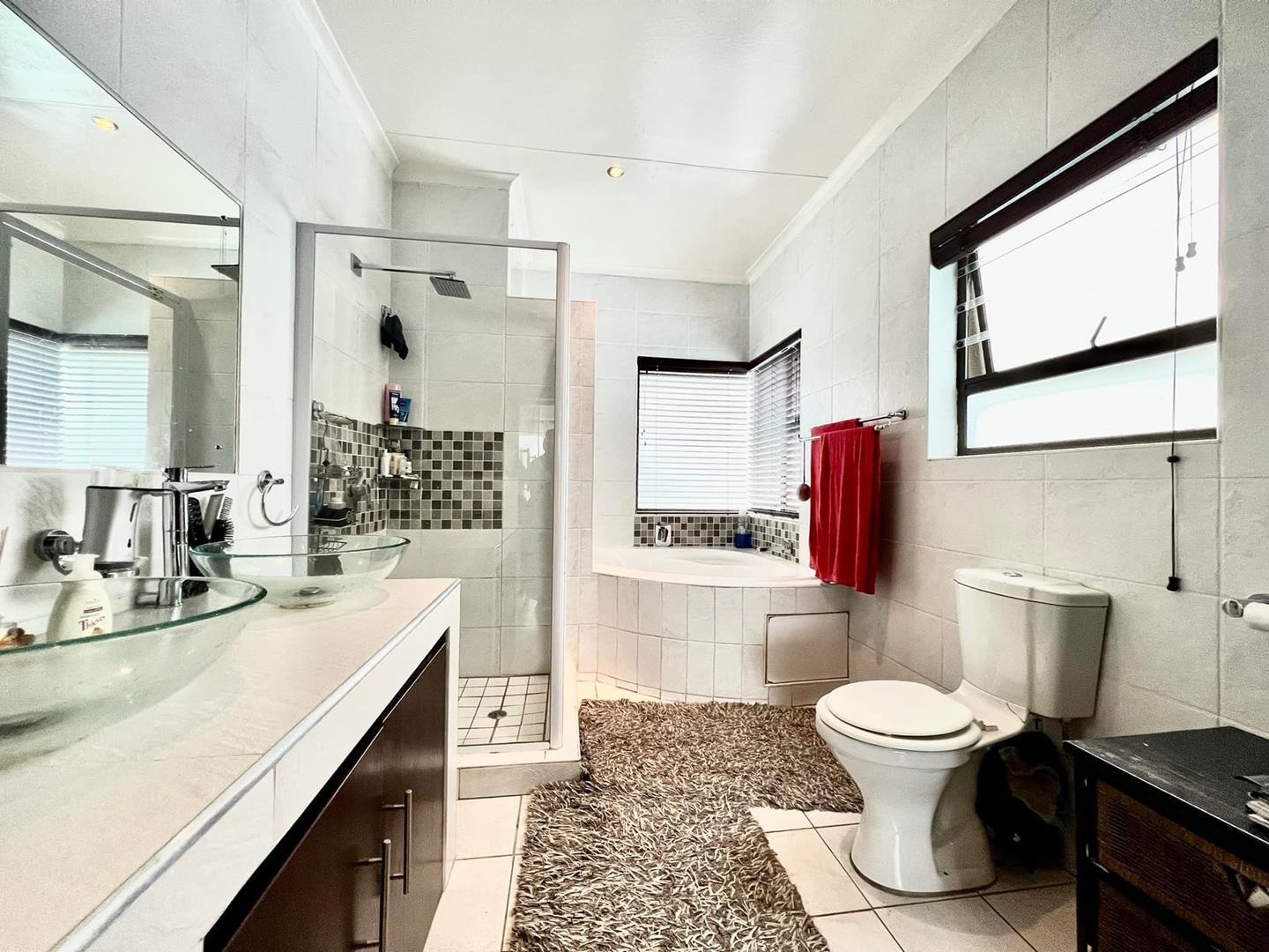 Offering 5 (FIVE) Bedrooms, 4 Bathrooms, a well fitted STUDY, dressing room at master, spacious o/plan living rooms comprising of a dining – and tv room area, opening up onto a patio with BBQ, overlooking the BIG GARDEN & POOL.