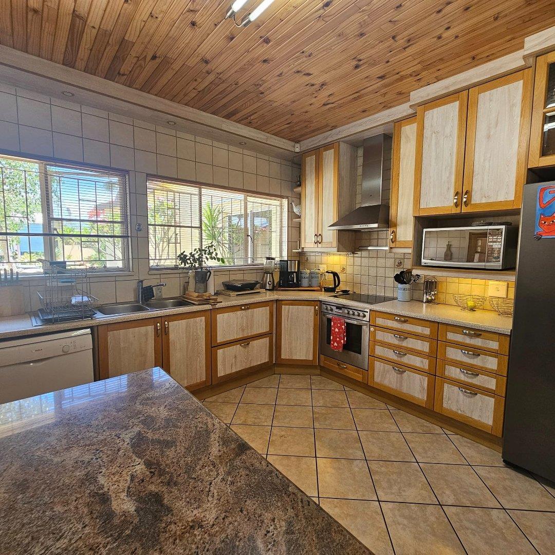 Spacious lounge with fireplace, dining room and fully fitted kitchen with granite tops, breakfast nook, pantry and laundry