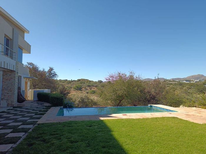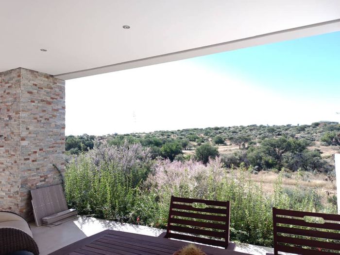 Embrace secure nature living minutes from Windhoek on Finkenstein Estate, with wild game trails, expansive views, two patios, pool and built-in braai — four beds, two baths, double garage