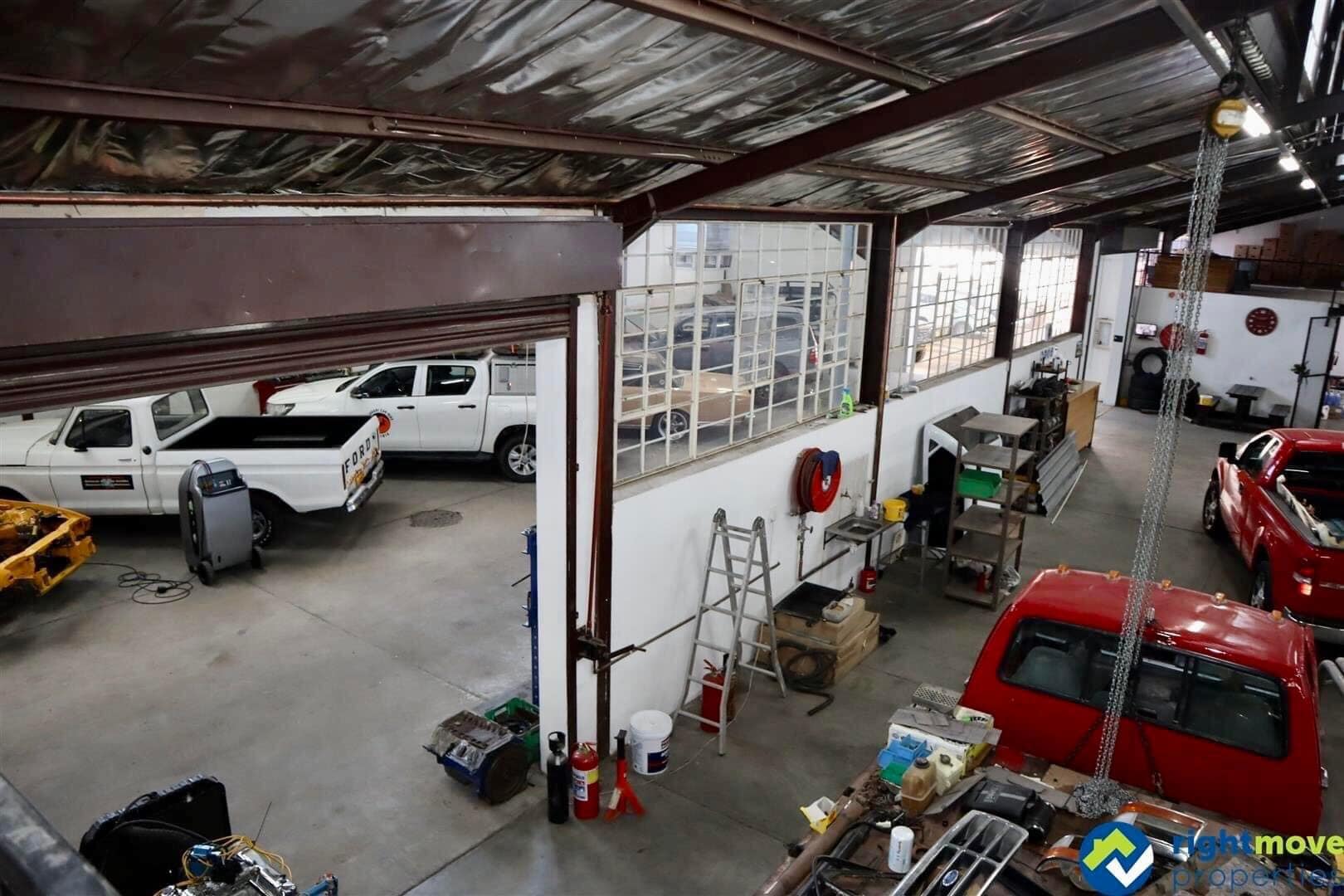 The workshop area consists of 2 large workshops, 2 mezzanine storage floors, 2 offices and a managers office/guest room.