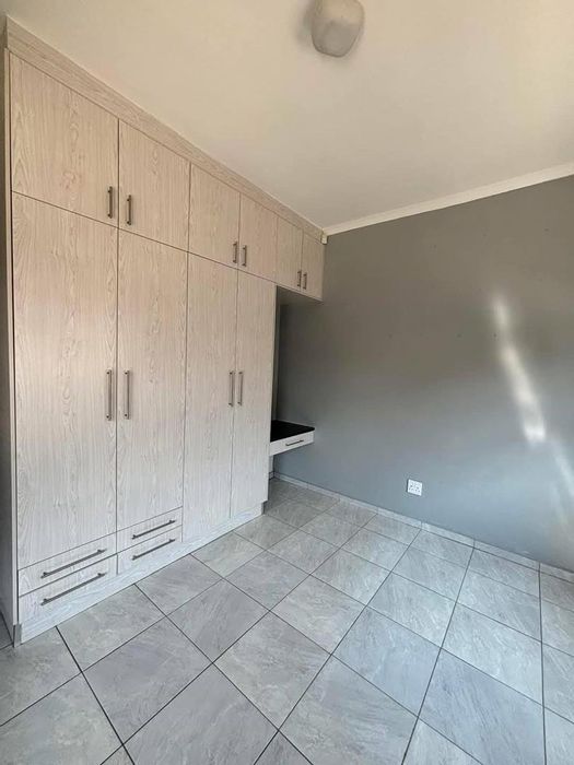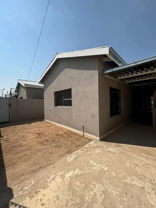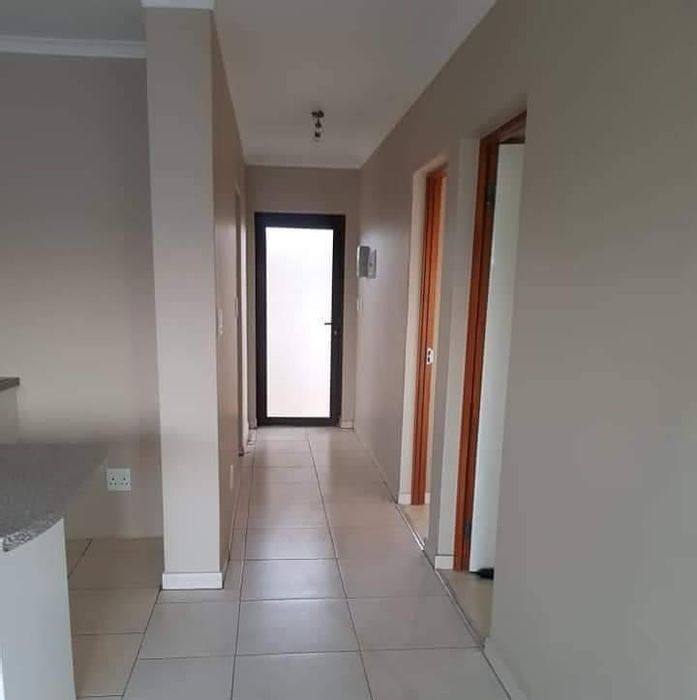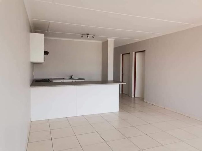 2-bedroom, 1-bathroom home with open-plan lounge, kitchen, private courtyard, and parking bay. Levies: N$1,900/month.